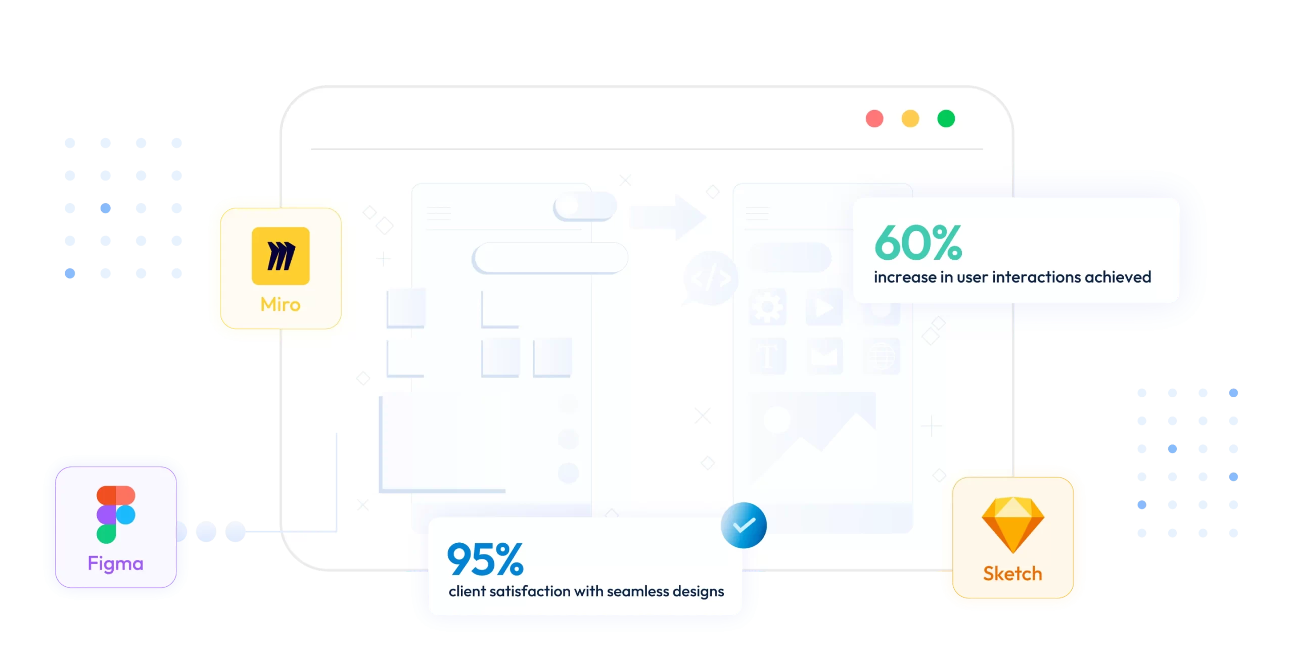 Get UI/UX design solutions that are made per your business requirements and yet modern in design. Our expert UI/UX designers create custom designs based on your requirements. Whether sleek, professional, interactive, or conversational, match your organization's objectives with custom UI/UX design services.